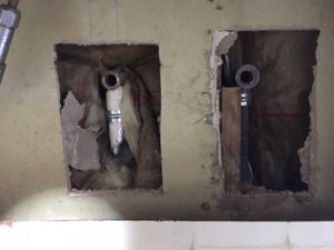 新しく配管を交換して壁の修復を行い作業を終了しました。