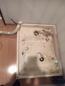 確認すると排水口のつまりがひどい状態でしたので
