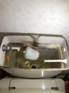 状態を確認するとトイレタンク内のボールタップが劣化し