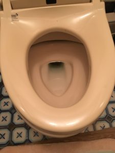 確認すると便器にトイレットペーパーが残っていましたので取り除き、