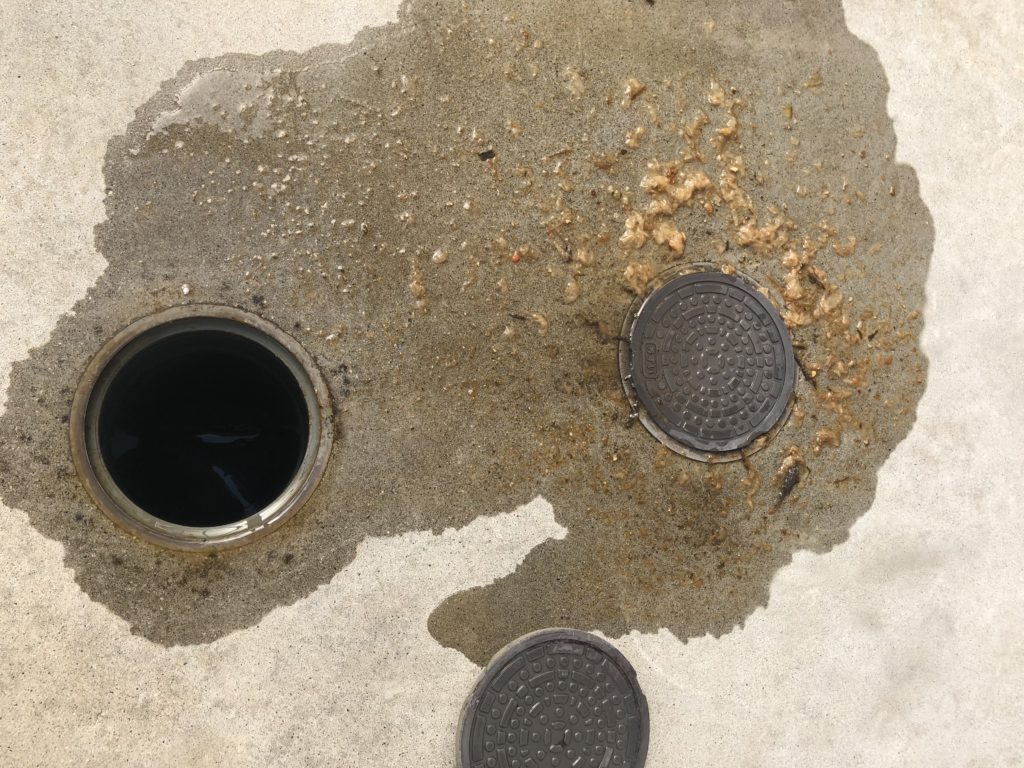 排水マスから水が溢れているので確実につまりが起こっています。