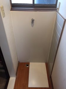 和歌山市にて、洗濯機蛇口の位置変更依頼をいただきました。洗濯機買い替えにあたり、蛇口の位置を変更したいとのことでした。現在の水栓を外し、新しい洗濯機蛇口を取り付けました。